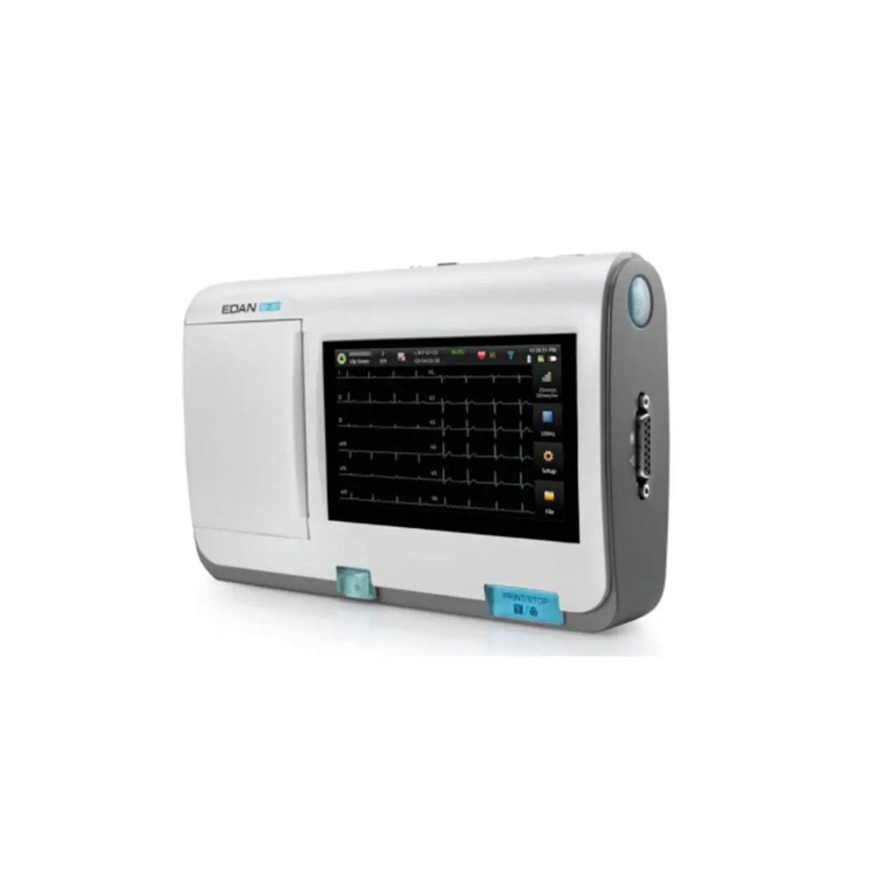 El electrocardiógrafo de 12 canales se ha diseñado para la adquisición de señales de ECG en reposo de pacientes adultos y pediátricos a través de electrodos de ECG distribuidos por toda la superficie del cuerpo. El cardiograma registrado por electrocardiógrafo de 12 canales puede ayudar a los usuarios durante el análisis y diagnóstico de cardiopatías.